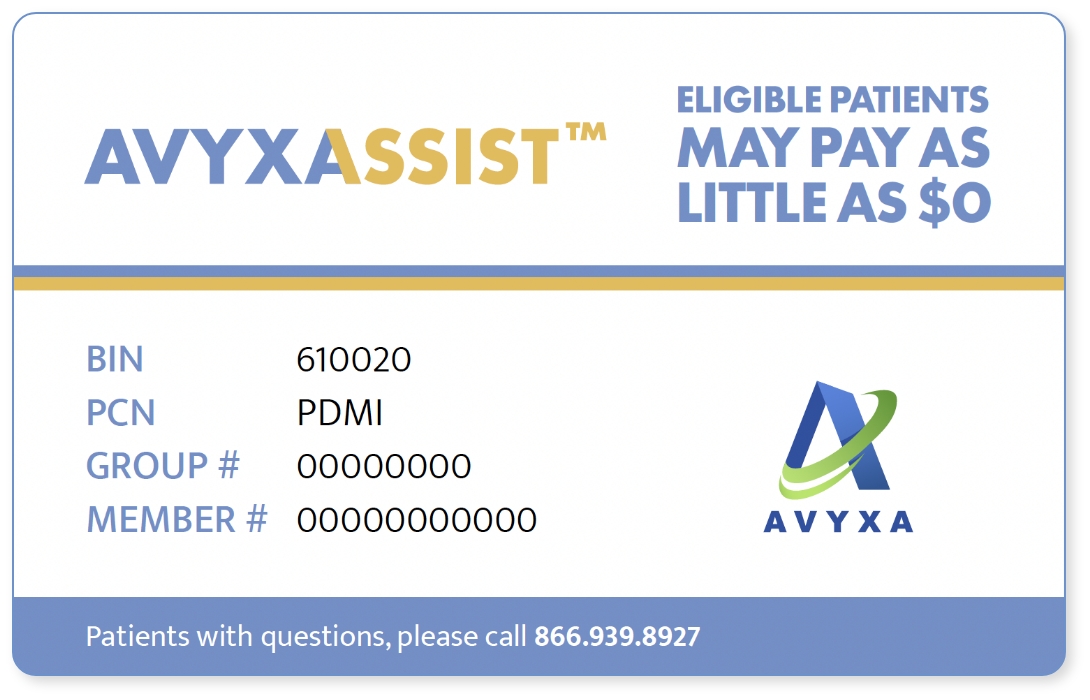 AVYXASSIST may offer free product assistance to eligible uninsured or underinsured patients who do not qualify for other assistance. Contact an AVYXASSIST Patient Access Specialist today to determine eligibility. Terms and conditions may apply.